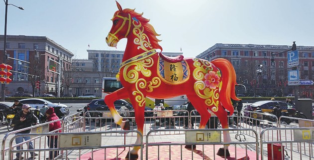 隆福寺门口的马年主题装置。本报记者曹原源/摄