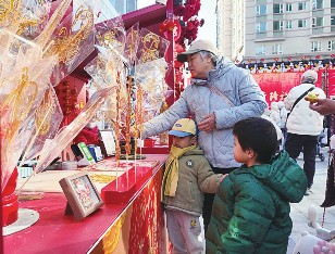市民在隆福寺挑选中国传统民俗糖画。实习生康潇文/摄